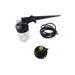 An easy to use, top quality spray gun for the beginner. This spray gun is a siphon feed type and works with a needle-less point tip. It operates 15-50 psi. It will spray inks, dyes, hobby enamels, lacquers, and acrylic.