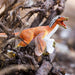 Velociraptor was a small, carnivorous dinosaur that lived in Mongolia during the Late Cretaceous, 71 to 75 million years ago. Unlike the fictional movie counterpart that made this species famous, the real Velociraptor was only about the size of a turkey and was covered in feathers. Despite its diminutive stature and feathery appearance, Velociraptor was an effective predator that used its dangerously sharp teeth and claws to subdue small prey and other dinosaurs.
