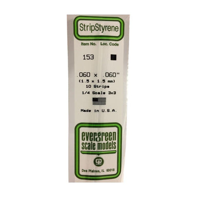 Package Contains Ten .060" x .060" White Styrene Square Rods from Evergreen Scale Models.FEATURES: White styrene strips are 14" long. Flexible plas...