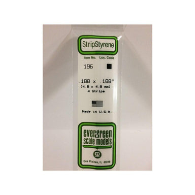 Package Contains Four .188" x .188" White Styrene Square Rod Strips from Evergreen Scale Models.FEATURES: White styrene strips are 14" long. Flexib...