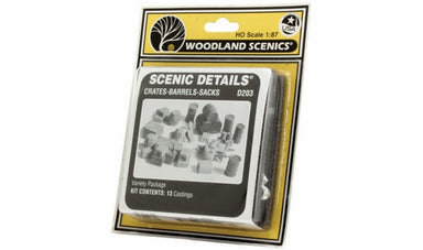 Crates-Barrels-Sacks HO Scale Kit Detail your layout with this assortment of oil drums, crates, barrels and feed sacks. These are great at tracksi...