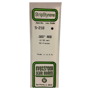 Package Contains Ten .020" White Styrene Plastic Round Rods from Evergreen Scale Models.FEATURES: Solid white styrene round rods are sturdy and dur...