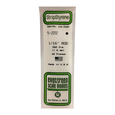 Package Contains Eight 1/16" White Styrene Plastic Round Rods from Evergreen Scale Models.FEATURES: Solid white styrene round rods are sturdy and d...