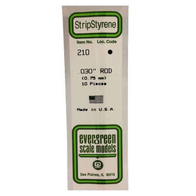 Package Contains Ten .030" White Styrene Plastic Round Rods from Evergreen Scale Models.FEATURES: Solid white styrene round rods are sturdy and dur...