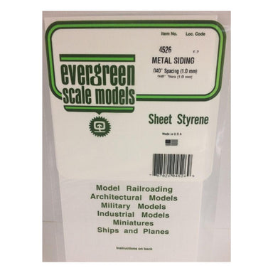 This is a Sheet of .040 Styrene with .040" Spaced Metal Siding Design from Evergreen Scale Models. For experienced model builders.FEATURES: White s...