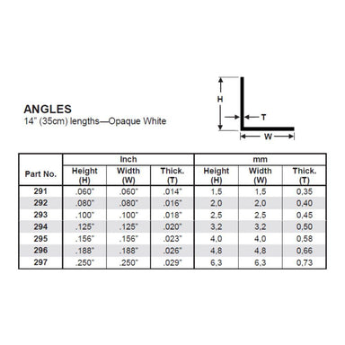 Contains Fourteen .080" X .080" X 24" OPAQUE WHITE POLYSTYRENE STRIP .080" X .080" X 24" / 2.0mm X 2.0mm X 60cm