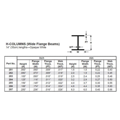 There are 4 StripStyrene .060" H-Columns Within This Evergreen Scale Models Package.FEATURES: Use for vertical or horizontal members in the constru...
