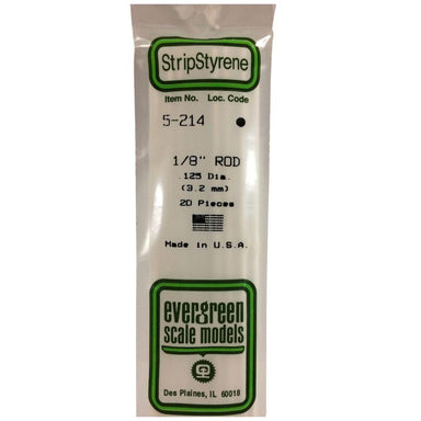 Package Contains Four 1/8" White Styrene Plastic Round Rods from Evergreen Scale Models.FEATURES: Solid white styrene round rods are sturdy and dur...