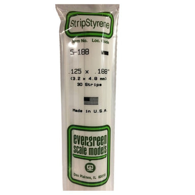 Package Contains Six .125" x .188" White Styrene Rectangular Strips from Evergreen Scale Models.FEATURES: White styrene strips are 14" long. Flexib...