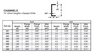 Contains Fourteen .060" X .100" X 24" OPAQUE WHITE POLYSTYRENE STRIP .060" X .100" X 24" / 1.5mm X 2.5mm X 60cm