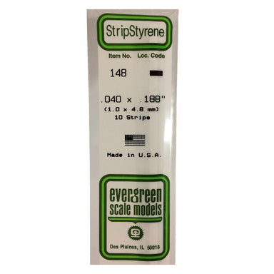 Package Contains Ten .040" x .188" White Styrene Rectangular Strips from Evergreen Scale Models.FEATURES: White styrene strips are 14" long. Flexib...