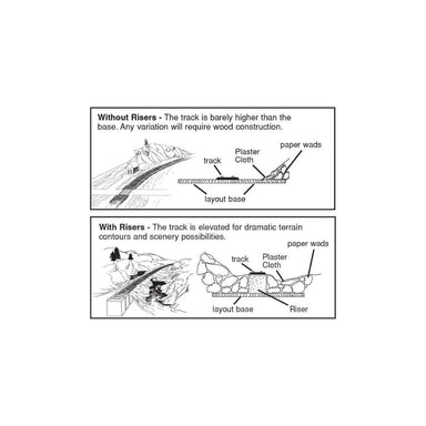 Risers are generally used with Incline/Decline Starters to create varying grades on your layout. Risers are easily flexed to form curves and work o...